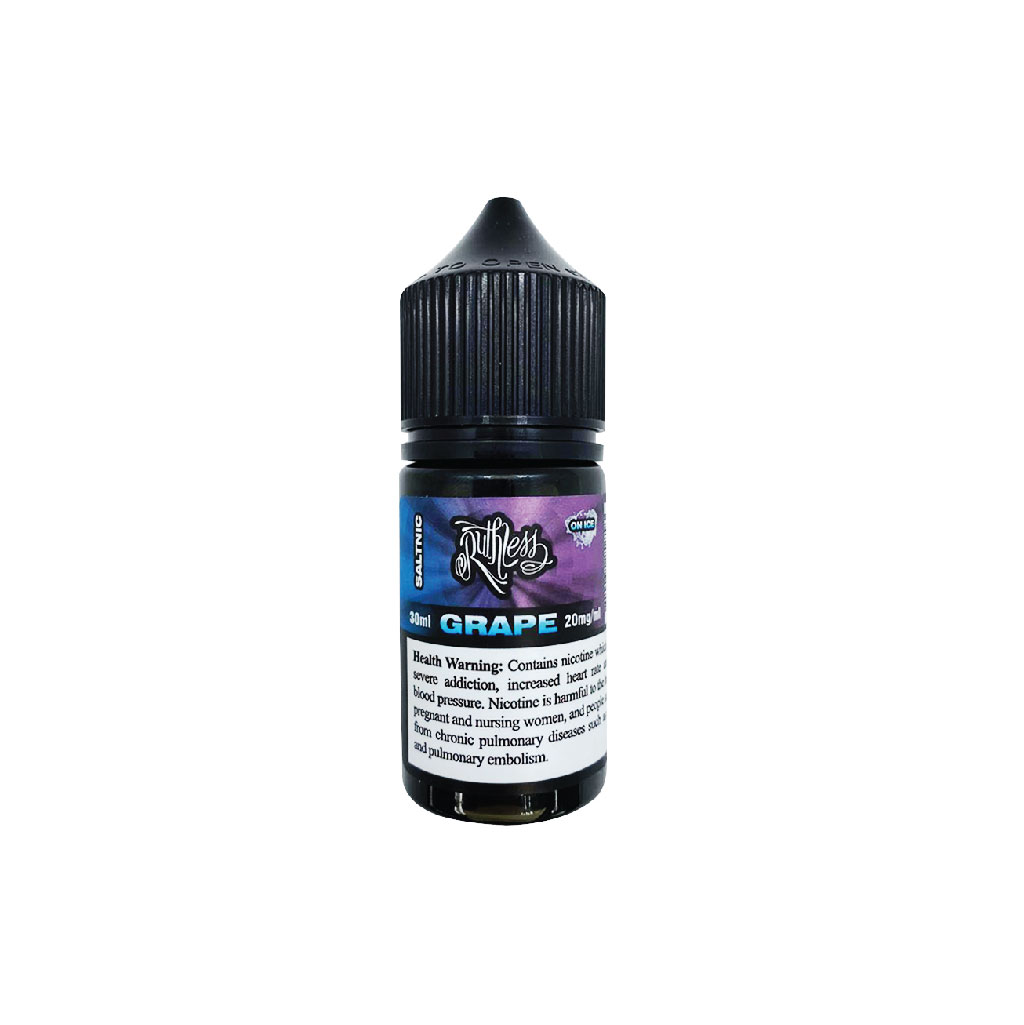 Grape On Ice vape juice from Ruthless Nicotine Salt comes in a 30ml dropper bottle with a balanced 50/50 VG/PG base.