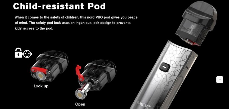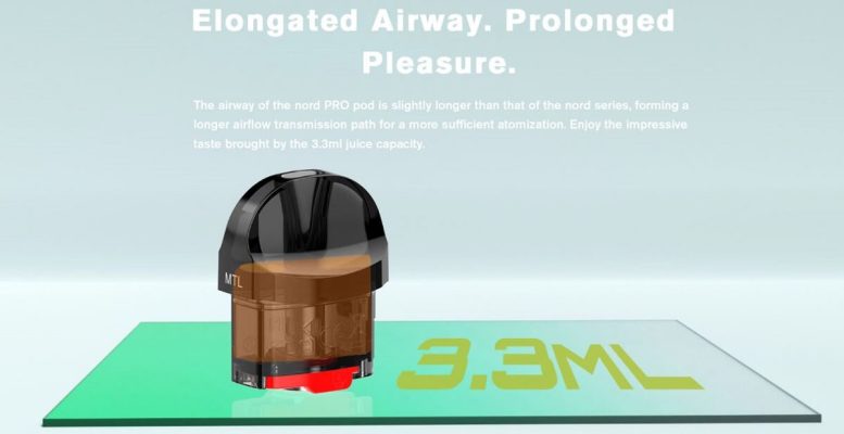 Nord Pro Empty Pod by Smok, featuring a 3.3mL side filled capacity, nord Pro Mesh Coil Series, and a child lock prevention system. Coils are sold separately.