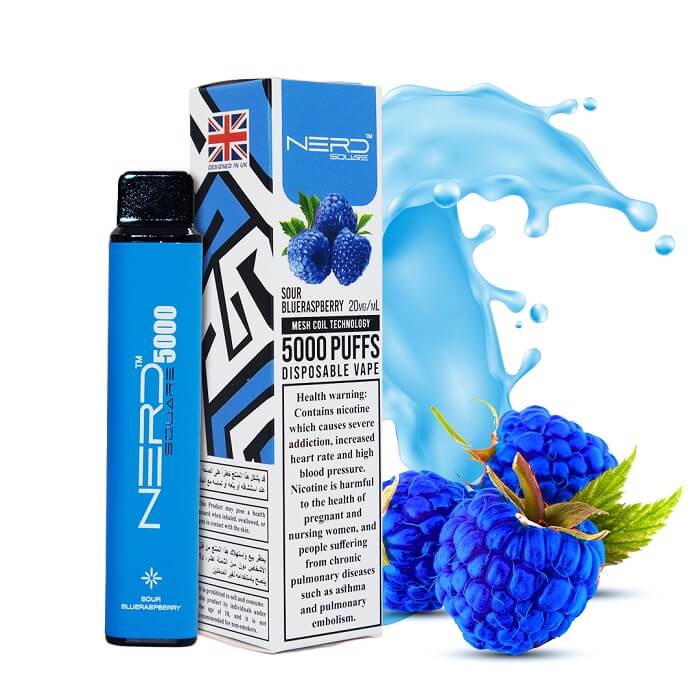 Sour Blueraspberry 5000 by Nerd Square is a fruit blend with a sugary layer. A blue raspberry, which plays between sweet and sour notes, is fused with a candied finish for a layered flavour.