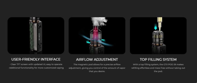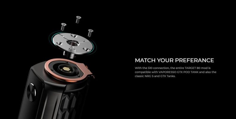 Constructed from durable zinc-alloy, the chassis of the Target 80 Mod is impervious to light falls and drops. Protecting the internal AXON chipset and 3000mAh battery, the Vaporesso Target 80 Mod can deliver up to 80W of output for excellent pairing with any rebuildable atomizer or sub-ohm tank. Naturally paired with the GTX PodTank 26, the Target 80 Kit is a perfect kit for beginners looking for a simple kit to use or advanced users that want something reliable and fairly low maintenance. Compatible with the Vaporesso GTX Coil Series, this Target 80 Starter Kit caters to all types of vapers and their preferences.