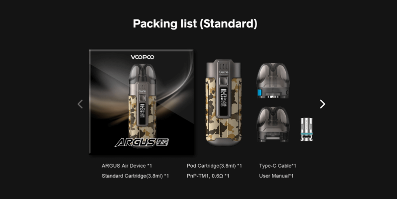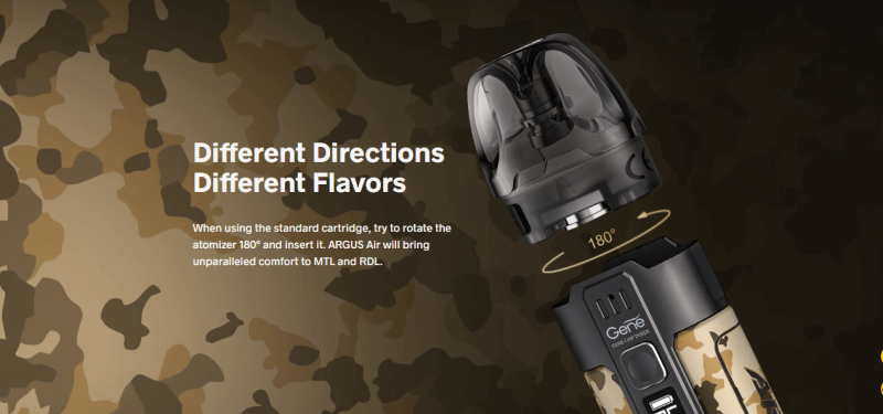 Featuring a 900mAh battery, two different pod options and airflow, and has selectable dual firing mechanisms. Offering an integrated 900mAh battery, the ARGUS AIR utilizes the GENE.AI Chipset to great success. Equipped with a dual firing mode, operating off of draw or button activated firing mechanisms, the VOOPOO ARGUS AIR pairs is versatile. Outfitting with two types of pod options, standard with replaceable coils, and the other with an integrated coil, the ARGUS Air Pod System offers an airflow control system when using the standard pod, allowing the user to rotate the installed pod to access a restricted DL or MTL airflow.