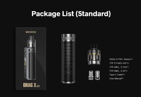 Constructed from durable zinc-alloy, the chassis is a beautiful fusion of strong metal and sleek leather, blending together for a luxurious visually striking appearance. Paired with the new TPP-X Pod, the Drag X Pro utilizes coils from the TPP Coil Series to deliver satisfying vapor and flavor from your favorite eJuice or nicotine salts. Equipped with a dual slotted airflow control ring, the DRAG X PRO Kit can output vapor in MTL or DL fashion, catering to all types of vapers.