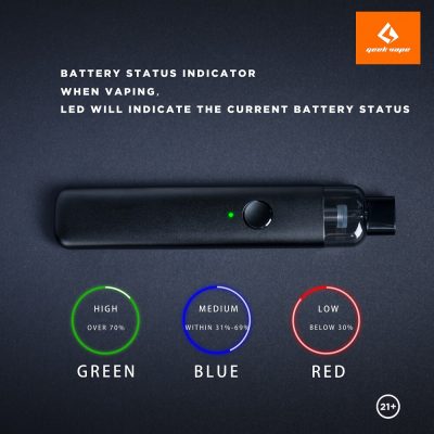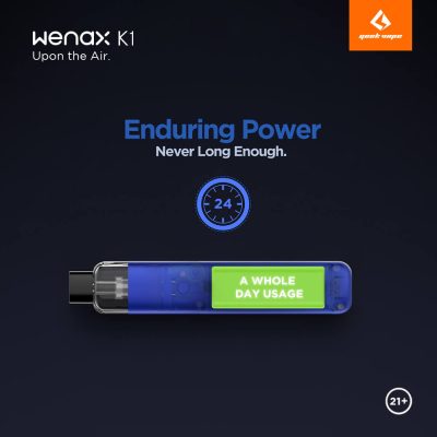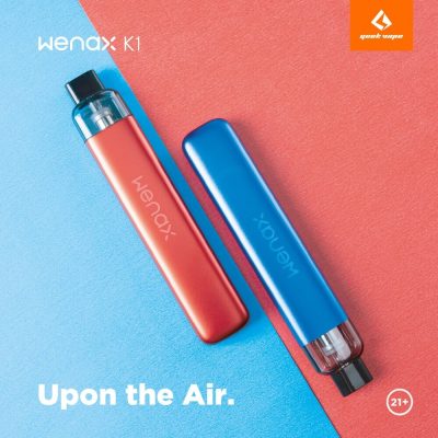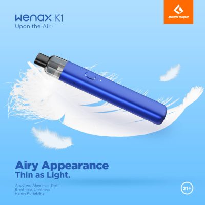 Wenax K1 by Geek Vape Pod System, featuring an integrated 600mAh battery, 16W output, and adjustable 3-tiered power output level.